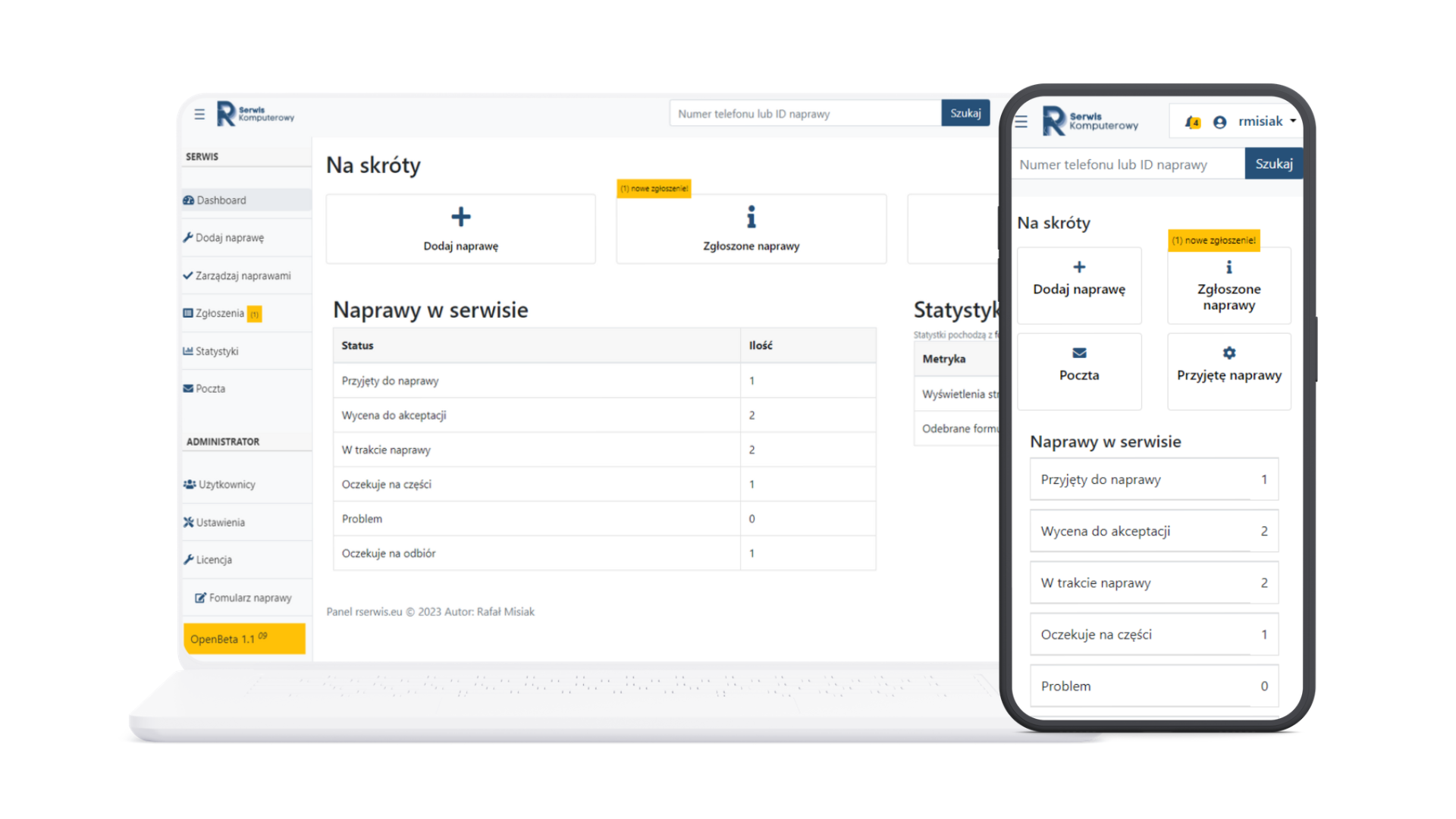 Zdobądź przewagę konkurencyjną dzięki naszemu prostemu i funkcjonalnemu CRM RSERWIS ! Sprawdź już teraz, jakie możliwości oferujemy w naszym nowym systemie. Dzięki naszemu prostemu i intuicyjnemu rozwiązaniu, zarządzanie serwisem komputerowym jeszcze nigdy nie było tak łatwe. Dołącz do naszej bety i doświadcz wszystkich funkcji, które przygotowaliśmy specjalnie dla Ciebie. Zapoznaj się z naszą roadmapą i poznaj nasz cennik. Nie przegap okazji i dołącz do bety teraz! Zaufaj nam, a twój biznes stanie się jeszcze bardziej efektywny. Jesteśmy gotowi, aby Cię wspierać na drodze do sukcesu.